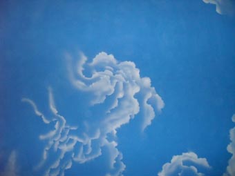 秦皇島市龍風化工涂料有限公司承接涂料藍天白云施工方案,包工包料,效果,個角度觀看都是立體效果。下圖為我司為戴河首領設計并施工的藍天白云完工圖。